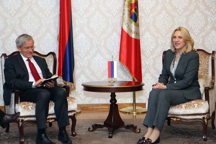 Предсједница Републике Српске Жељка Цвијановић разговарала је данас у свом кабинету са делегацијом ОХР-а, коју је предводио високи представник у БиХ Валентин Инцко. Састанку је, поред Валентина Инцка, присуствовао и новоименовани први замјеник високог представника и супервизор за Брчко Мајкл Скенлан, а разговарано је о актуелној политичкој ситуацији у Републици Српској и БиХ. Током састанка…