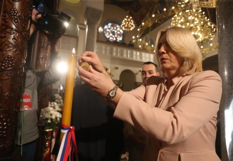 Предсједница Републике Српске Жељка Цвијановић присуствовала је данас светој архијерејској литургији коју је служио Његова светост патријарх српски Иринеј поводом празника Светог архиђакона и првомученика Стефана, те обреду ломљења славског колача.