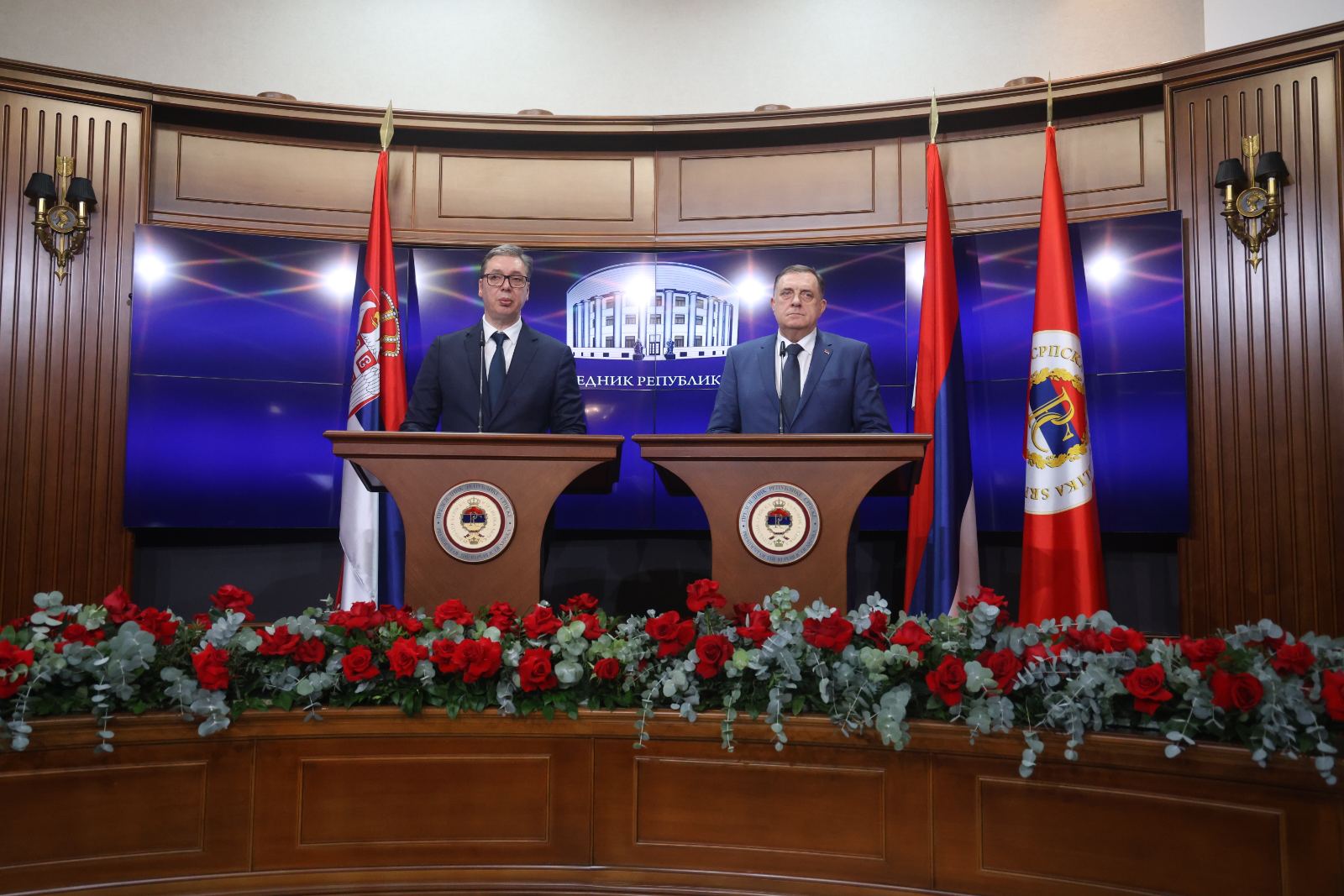 Предсједник Републике Српске Милорад Додик разговарао је вечерас у Бањалуци са предсједником Републике Србије Александром Вучићем. Предсједник Републике Српске рекао је да се српски народ залаже за мир те је, након састанка са предсједником Србије, позвао све људе у Републици Српској да сачувају мир и стабилност након данашње пресуде у Суду БиХ. “Немамо ратни план,…