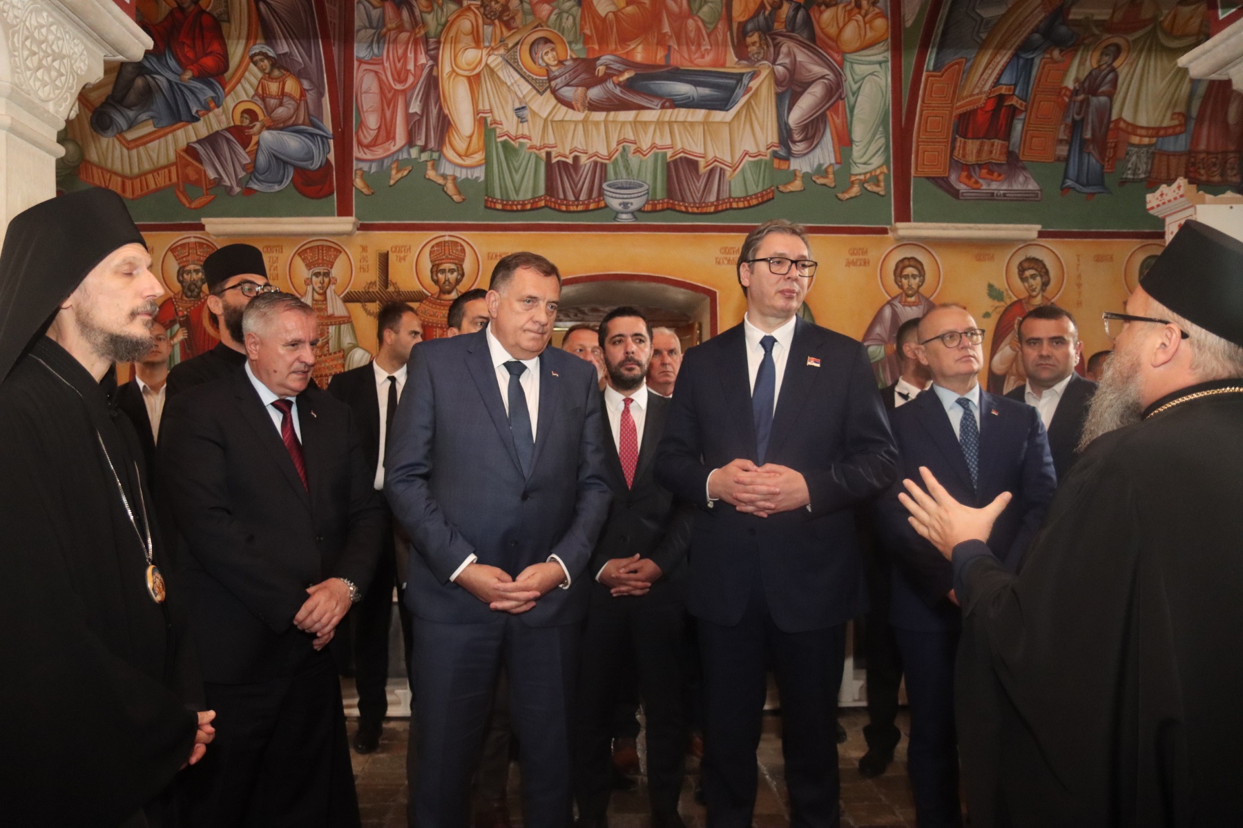 Предсједник Републике Српске Милорад Додик, предсједник Србије Александар Вучић и предсједник Владе Републике Српске Радован Вишковић посјетили су данас манастир Житомислић код Мостара гдје их је дочекао Његово преосвештенство епископ захумско-херцеговачки и приморски Димитрије. Добродошлицу званичницима Републике Српске и Србије пожелио је и игуман манастира Житомислић Данило. Овом приликом предсједник Републике је рекао да је…