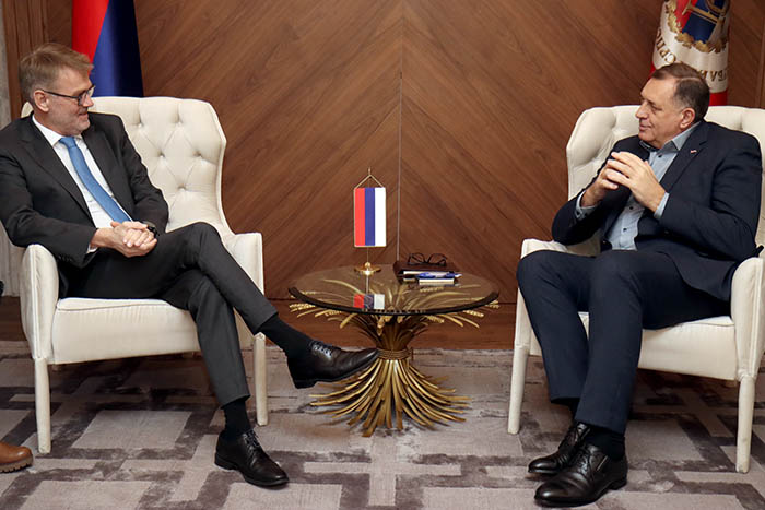Предсједник Републике Српске Милорад Додик разговарао је данас у Бањој Луци са амбасадором Краљевине Норвешке у БиХ Олавом Рајнертсеном. Предсједник Додик изразио је пуну опредјељеност институција Републике Српске ка унутрашњем дијалогу, очувању мира и стабилности, уз досљедно поштовање Дејтонског споразума и Устава БиХ. Предсједник Републике поновио је јасан став да Република Српска одбацује сваку врсту…