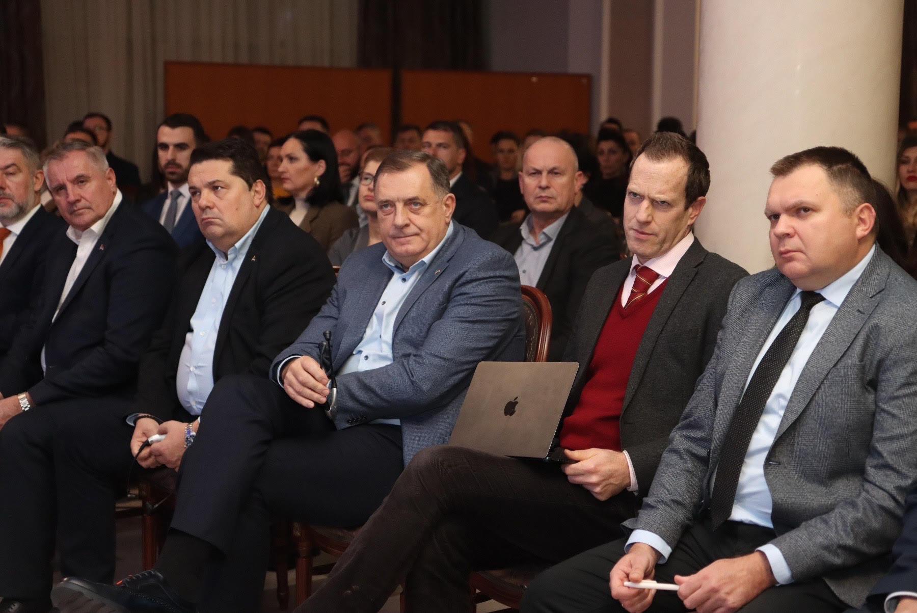 Предсједник Републике Српске Милорад Додик присуствовао је данас, у Административном центру Владе Републике Српске, предавању Тимотија Леса, водећег истраживача у Центру за геополитику Универзитета у Кембриџу, о теми „Геополитички аспекти положаја Републике Српске“. Фотографије: Кабинет предсједника Републике Српске / Борислав Здриња