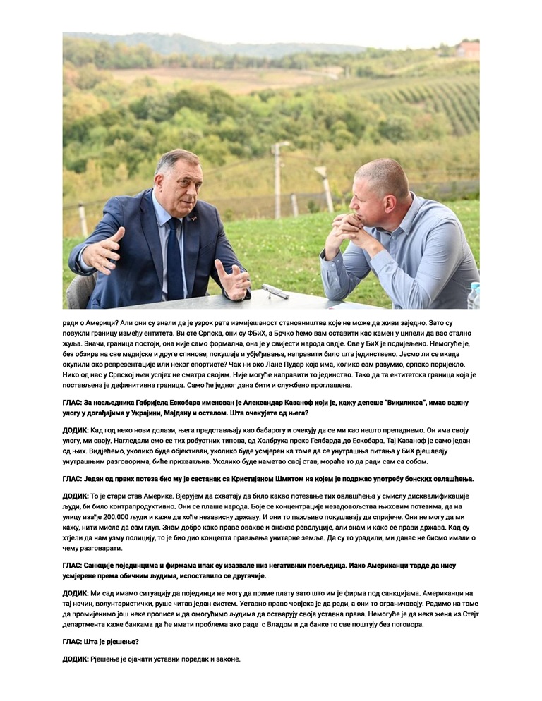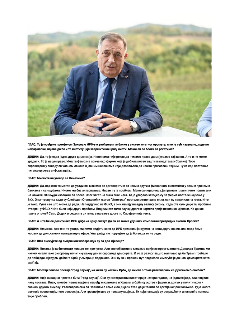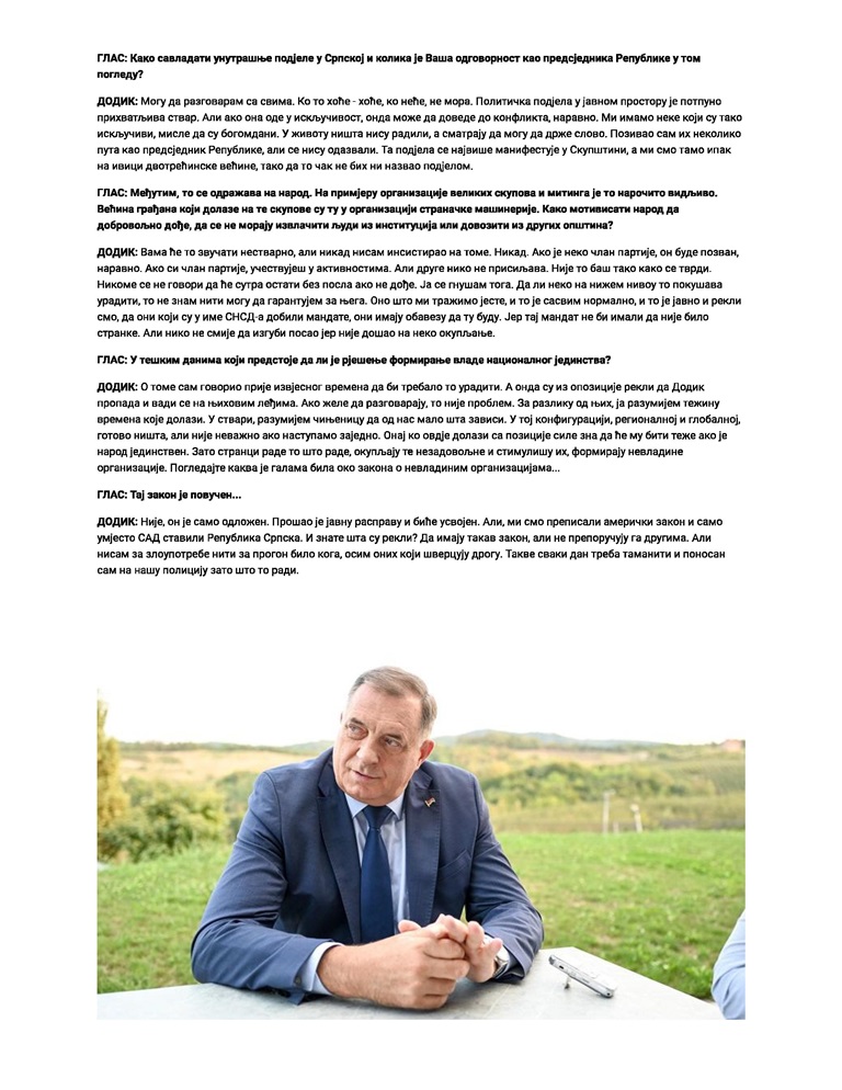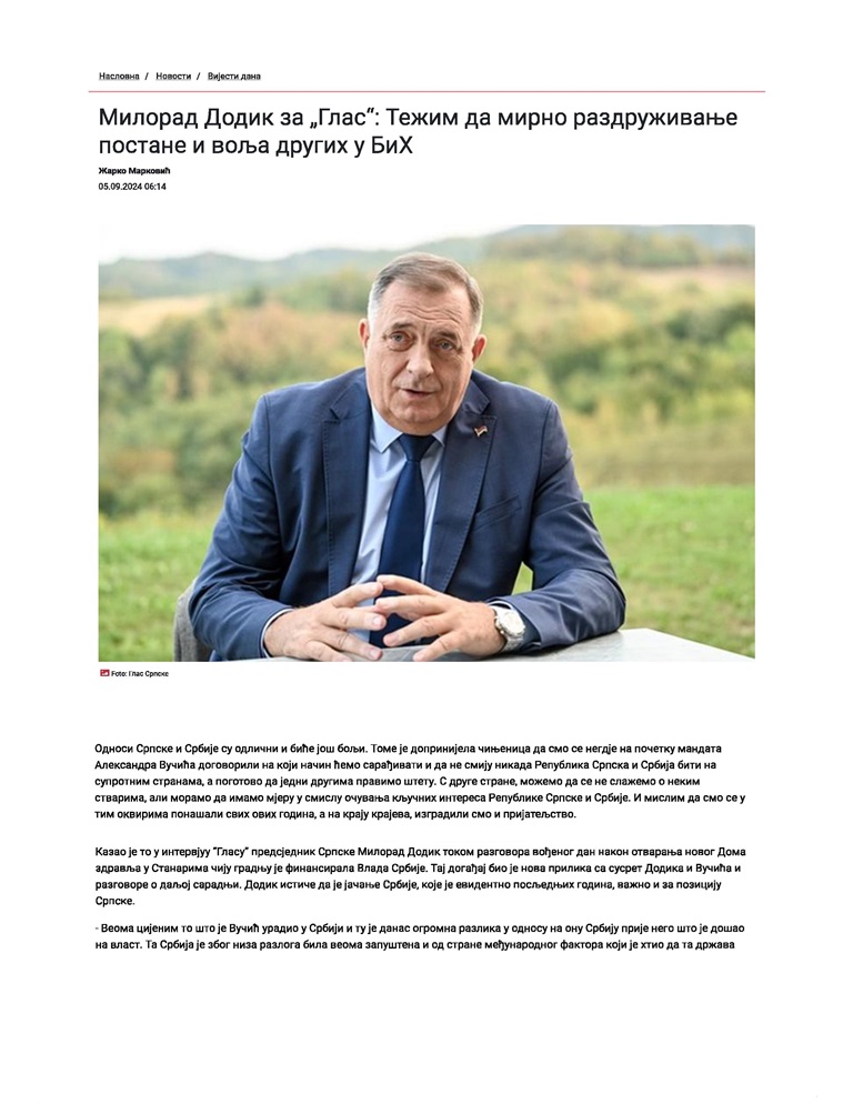 Интервју предсједника Републике Српске за Глас Српске, 05.09.2024. године