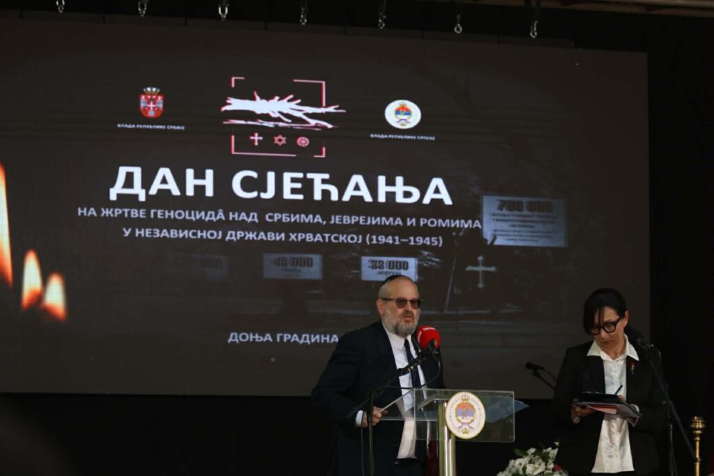 “Логор смрти Јасеновац и Доња Градина као његово највеће стратиште су вјечна опомена човјечанству, доказ до које мјере зло може да иде када постане идеологија, а идеологија постане државна политика”, истакао је предсједник Kаран у обраћању.