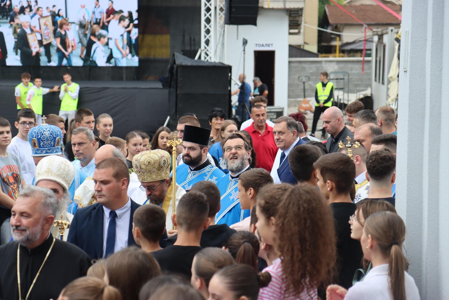Његова светост патријарх српских Порфирије освештао је данас Саборни храм Рођења Пресвете Богородице у Зворнику, а кум је био предсједник Републике Српске Милорад Додик.