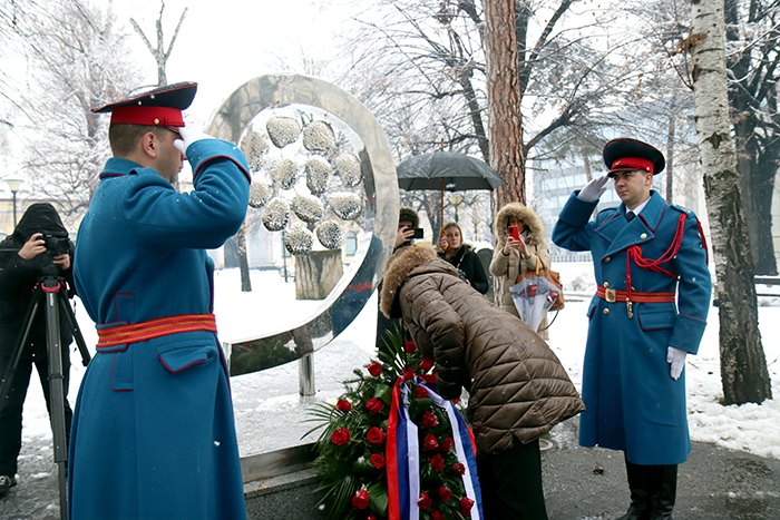 На Споменик “12 беба” у Бањалуци вијенац и цвијеће положили су изасланик предсједника Републике Српске Марко Ромић, секретар Удружења “12 беба” Жељка Тубић, те представници Министарства рада и борачко-инвалидске заштите Српске.