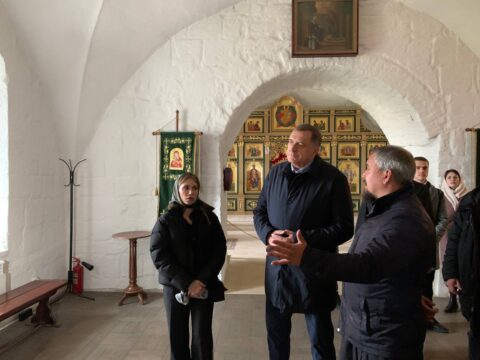 Предсједник Републике Српске Милорад Додик обишао је данас на острву-граду Свијажск активни манастир Светог Јована Крститеља, као и Тројичку цркву и Саборни храм Богородице иконе Свију жалоснији.