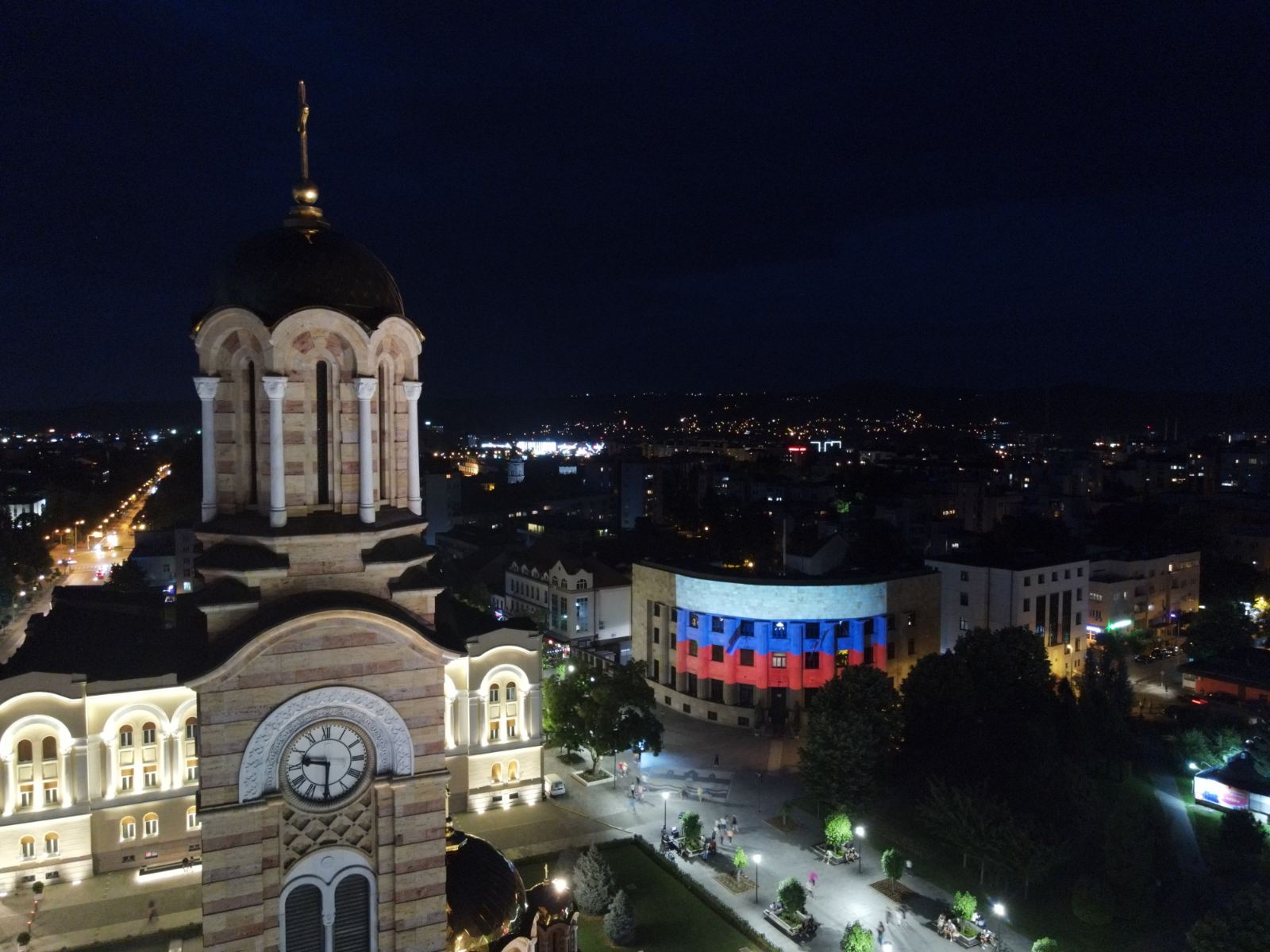 Поводом Националног празника – Дана Русије вечерас је бојама руске заставе освијетљена Палата Републике.