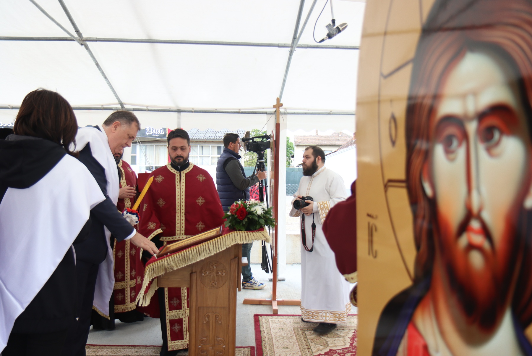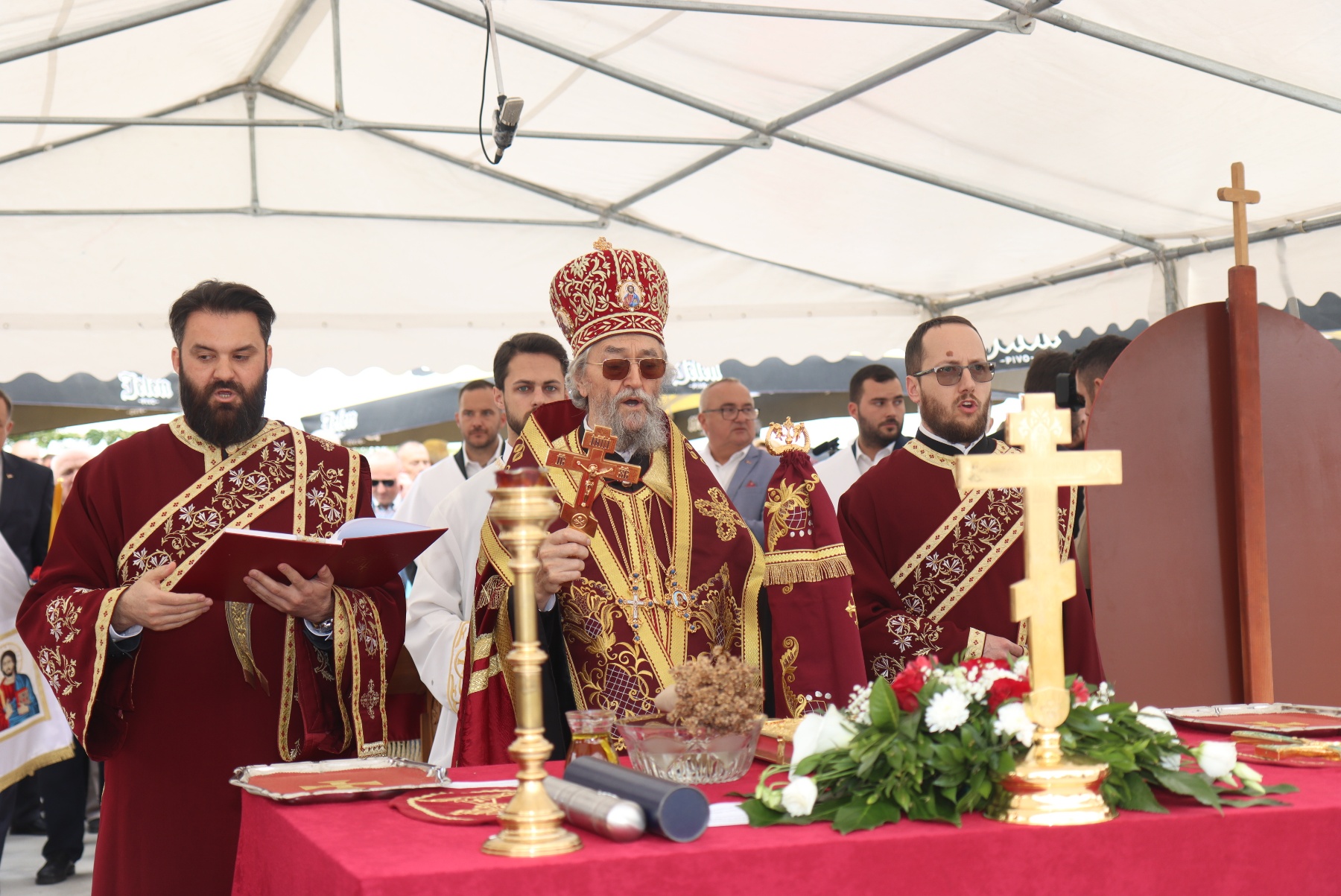 Чин освећења темеља храма предводио је Његово преосвештенство владика бањалучки Јефрем уз саслужење свештеника Епархије.