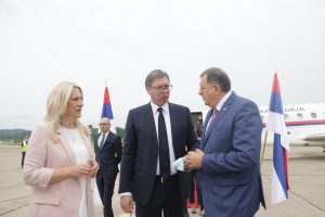 Предсједница Републике Српске Жељка Цвијановић и српски члан Предсједништва БиХ Милорад Додик дочекали су на аеродрому Бања Лука предсједника Републике Србије Александра Вучића.