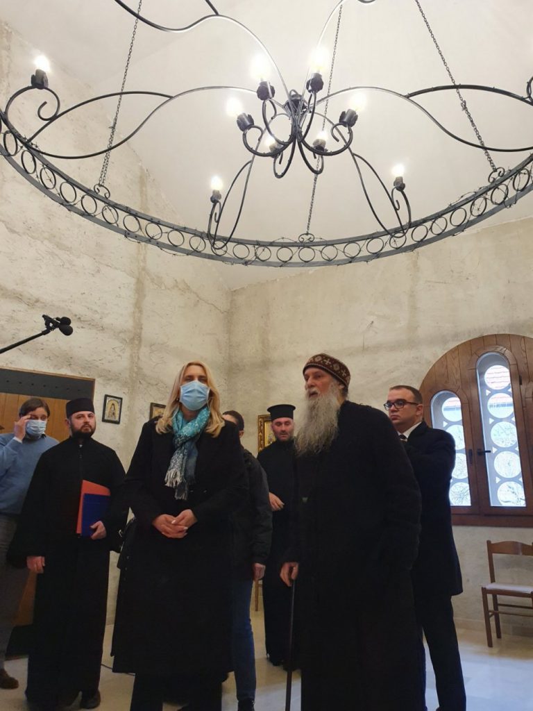Предсједница Републике Српске Жељка Цвијановић посјетила је данас манастир Јасеновац и разговарала са Његовим преосвештенством епископом пакрачко-славонским Јованом.