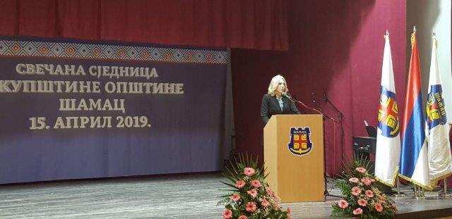 Предсједница Републике Српске Жељка Цвијановић присуствовала је данас свечаној сједници Скупштине општине Шамац поводом 15. априла – Дана општине.