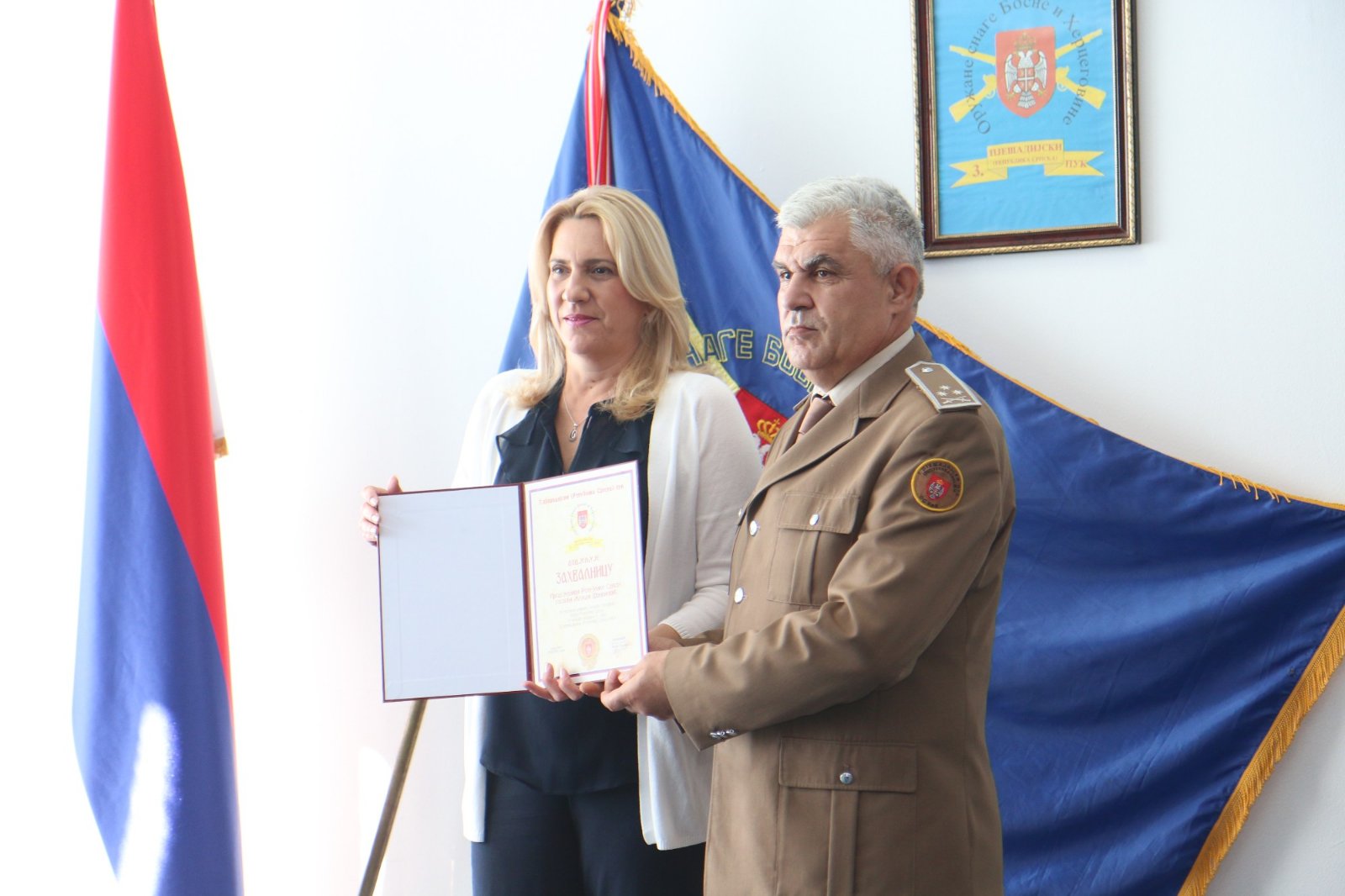 Предсједница Републике је поручила да је заједнички задатак предсједника и припадника те војне формације његовање традиција ВРС вриједности одбрамбено-отаџбинског рата.