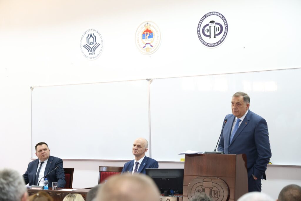 Предсједник Републике Српске Милорад Додик присуствовао је данас на Факултету политичких наука догађају „О упису и инвестицијама на Универзитету у Бањој Луци“.
