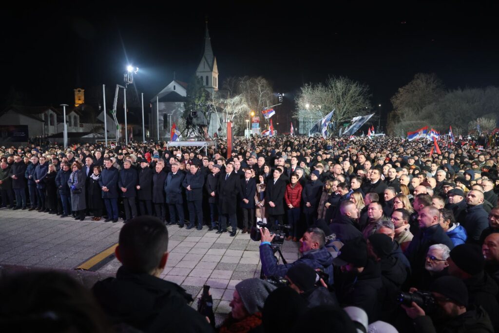 “План је да се сруши Србија рушењем предсједника Вучића уз кога је већинска Србија, Република Српска и сви Срби ма гдје живјели. Зато се морамо окупити и дати снагу предсједнику Вучићу”, поручио је предсједник Додик.
