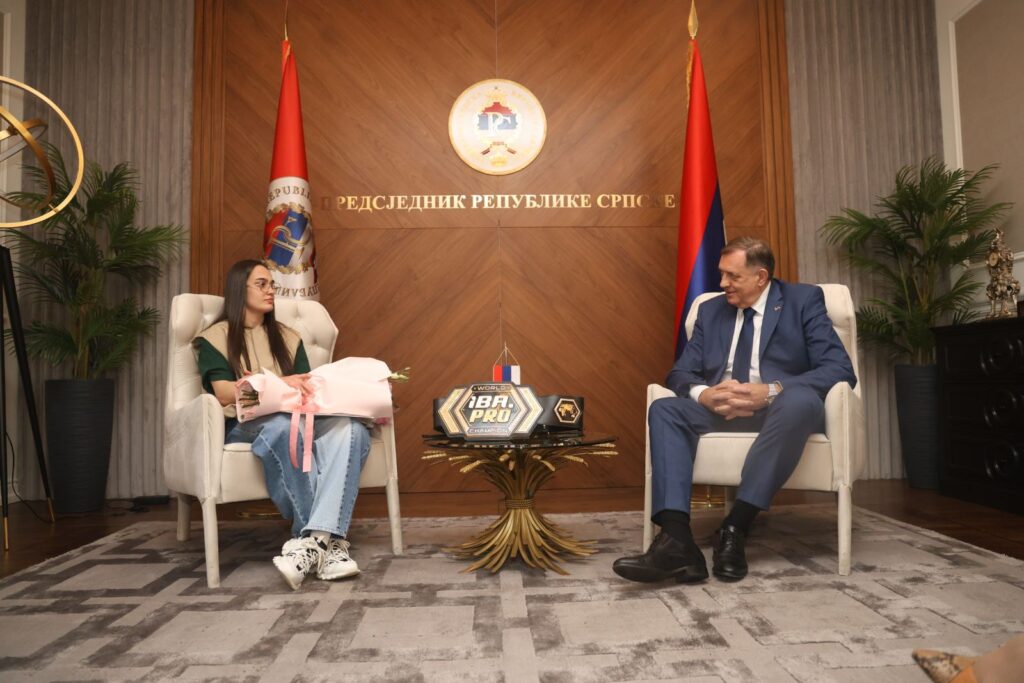 Предсједник Републике Српске Милорад Додик уприличио је данас пријем за боксерку Сару Ћирковић, која је освојила ИБА професионалну титулу првака свијета.