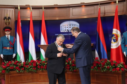 Предсједник Додик захвалио је премијеру Орбану што је прихватио да прими ово одликовање, које Српска додјељује великим и правим пријатељима.