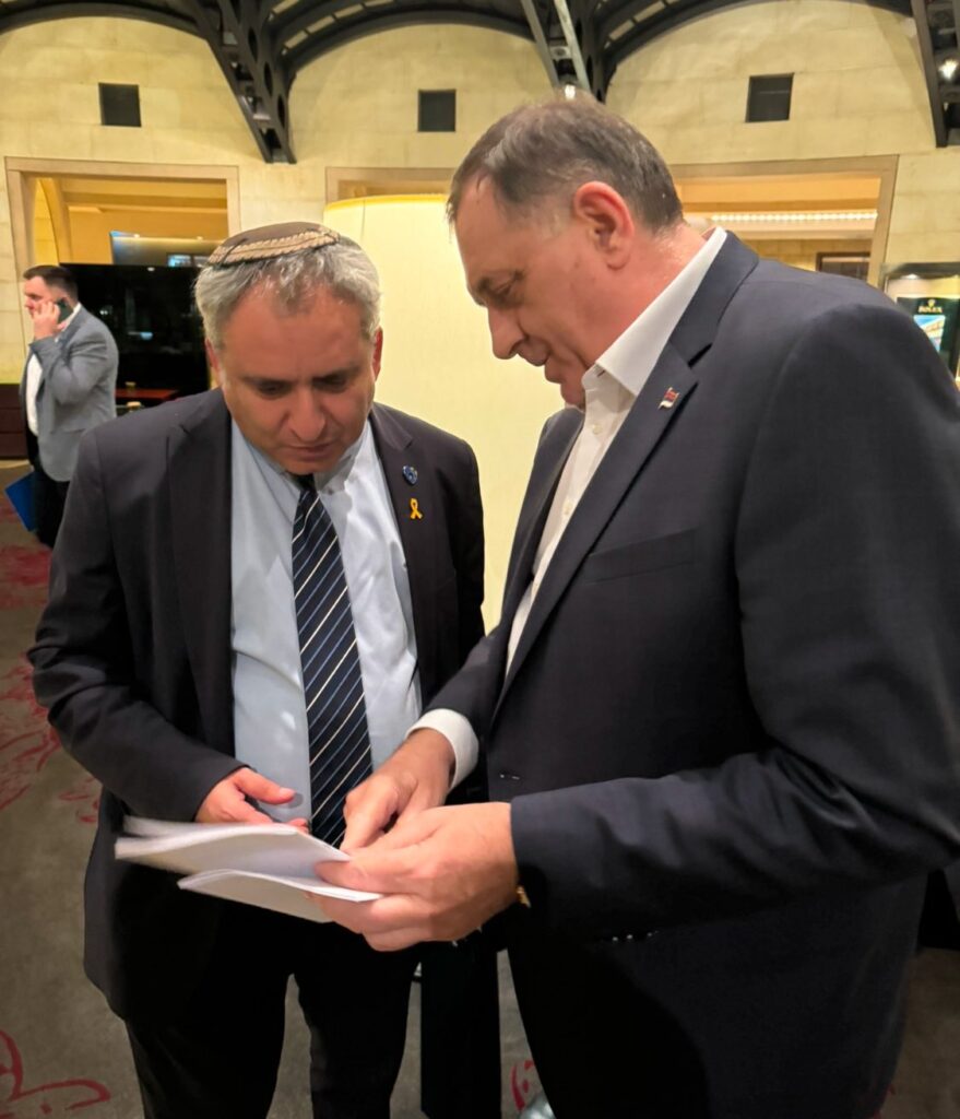 “У Јерусалиму сам разговарао са министром у израелском Министарству финансија Зеевом Елкином. Поред политичке, веома нам је битна економска сарадња Израела и Републике Српске”, написао је предсједник Милорад Додик на друштвеној мрежи “Икс”.