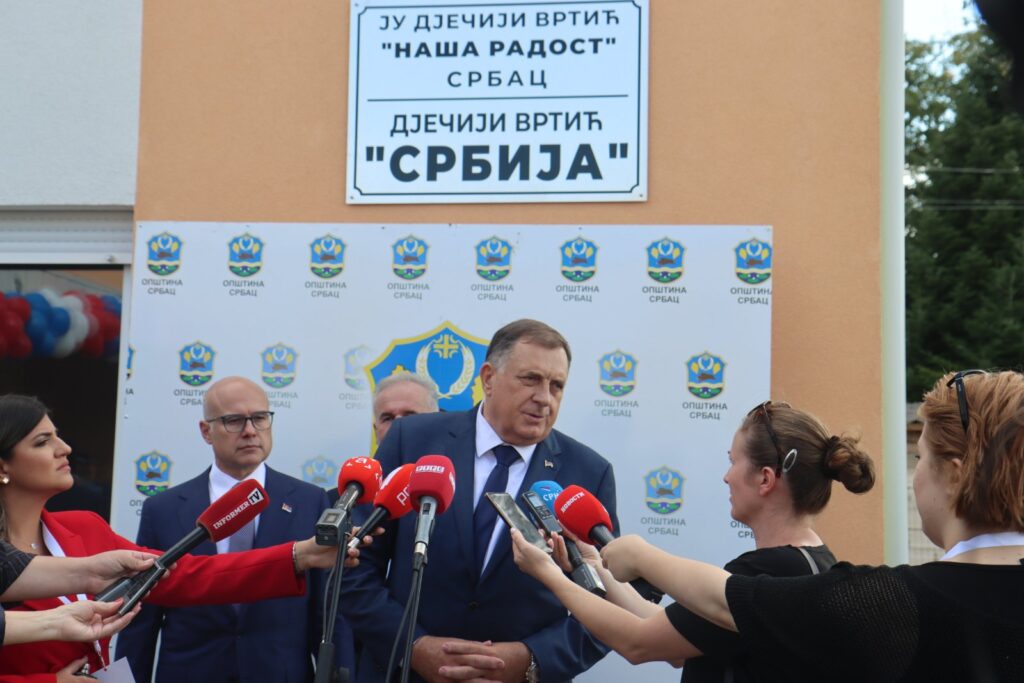 “Подршка Србије је велика и тај осјећај да вас неко помаже је више од новца. Очекујем да једног дана у вртићу у Српцу поред назива `Србија` буде и име Александра Вучића, који му је највише допринио”, рекао је предсједник Додик.