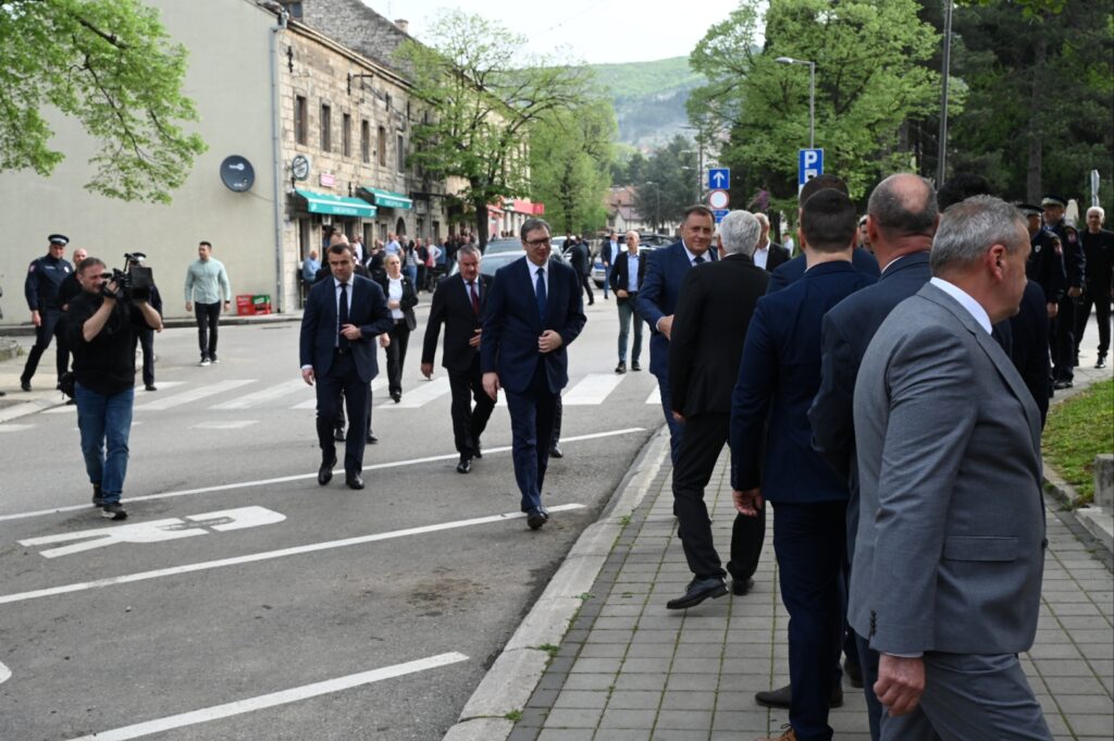 Предсједника Додика, предсједника Вучића и премијера Вишковића по доласку у Билећу дочекао је велики број грађана, као и дјеца из вртића “Будћност” обучена у народне ношње.