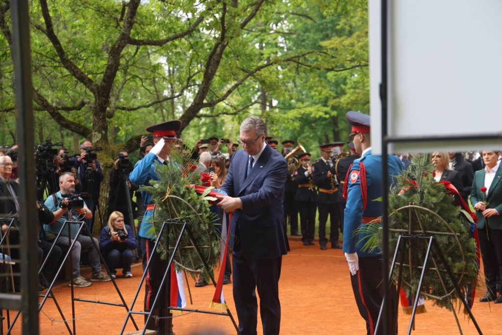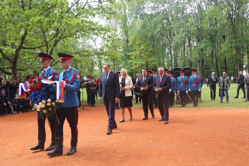 Вијенац и руже положили су предсједник Србије Александар Вучић са делегацијом Србије, предсједавајућа и српски члан Предсједништва Жељка Цвијановић, предсједник Народне скупштине Српске Ненад Стевандић и премијер Српске Радован Вишковић.