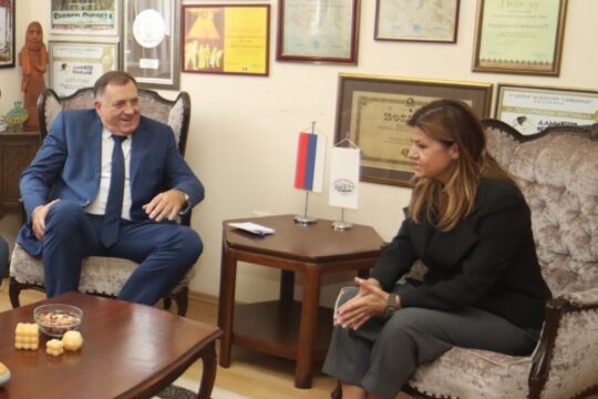 Предсједник Републике Српске Милорад Додик посјетио је данас Народно позориште Републике Српске и разговарао са директорицом Дијаном Грбић.