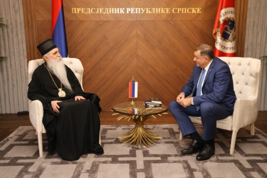 Предсједник Републике изразио је радост поводом сусрета са Епископом бачким Иринејем за кога је рекао да у временима пуним искушења својом мудрошћу води вјерујући народ путем заједништва.