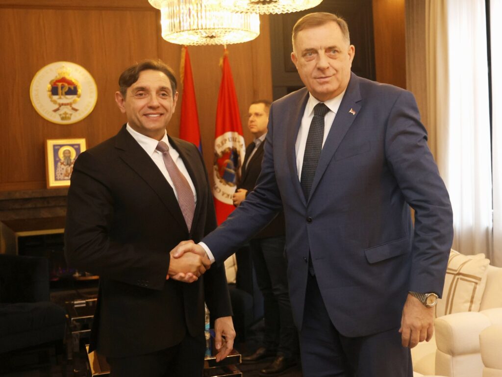 Предсједник Републике Српске Милорад Додик разговарао је данас у Палати Републике са потпредсједником Владе Србије Александром Вулином.