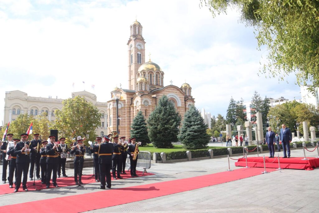 У част предсједника Владе Србије испред Палате Републике постројена је почасна јединица Министарства унутрашњих послова Републике Српске.