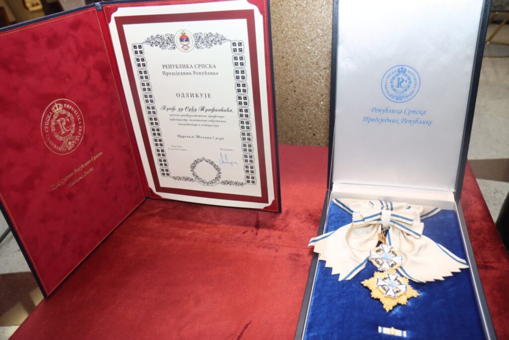 Предсједник Републике Српске Милорад Додик, поводом Видовдана – крсне славе Војске Републике Српске, одликовао је професора доктора Срђу Трифковића, српског универзитетског професора, публицисту, политичког савјетника, аналитичара и историчара Орденом Његоша I реда за признати јавни рад, личне резултате и заслуге којим се доприноси друштвено-политичком развоју на пољу интернационалне политике што доводи до опште афирмације Републике Српске.
