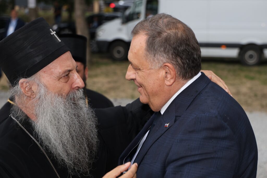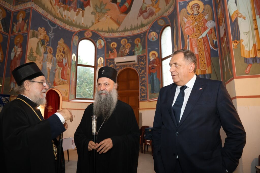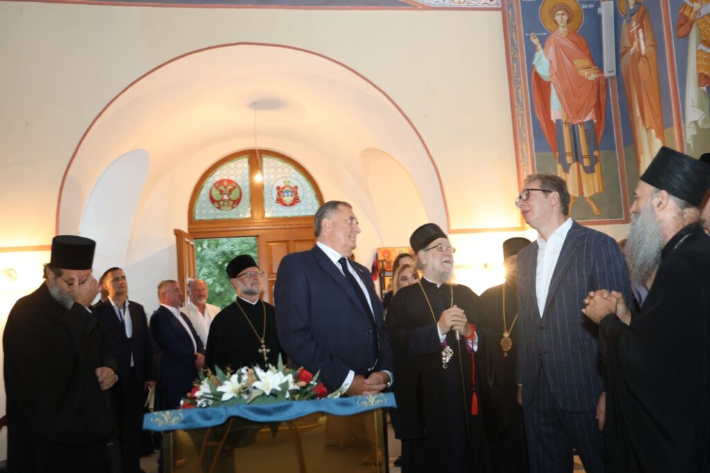 Претходно су предсједник Српске и предсједник Вучић, заједно са Патријархом српским Порфиријем, обишли цркву Благе Марије у Банстолу.