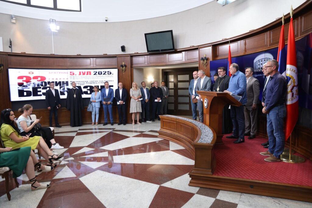 Предсједник Републике истакао је да бошњачки политички представници годинама стварају лажни наратив о карактеру злочиина у Сребреници и броју жртава, али је и позвао све да скуп 11. јула, када се обиљежава страдање, прође мирно истакавши да ће институције Српске учинити све да тако и буде.