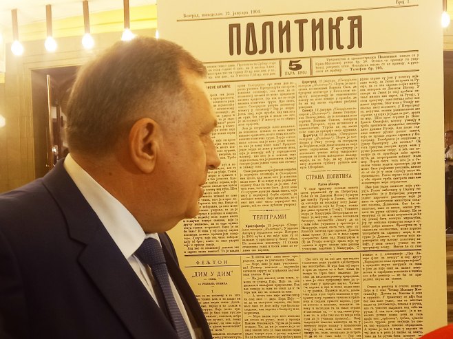 Предсједник Додик истакао је да је “Политика” веома успјешно пратила све друштвене догађаје, друштвене промјене, које су биле итекако важне, преживјела Први и Други свјетски рат, као и распад Југославије.