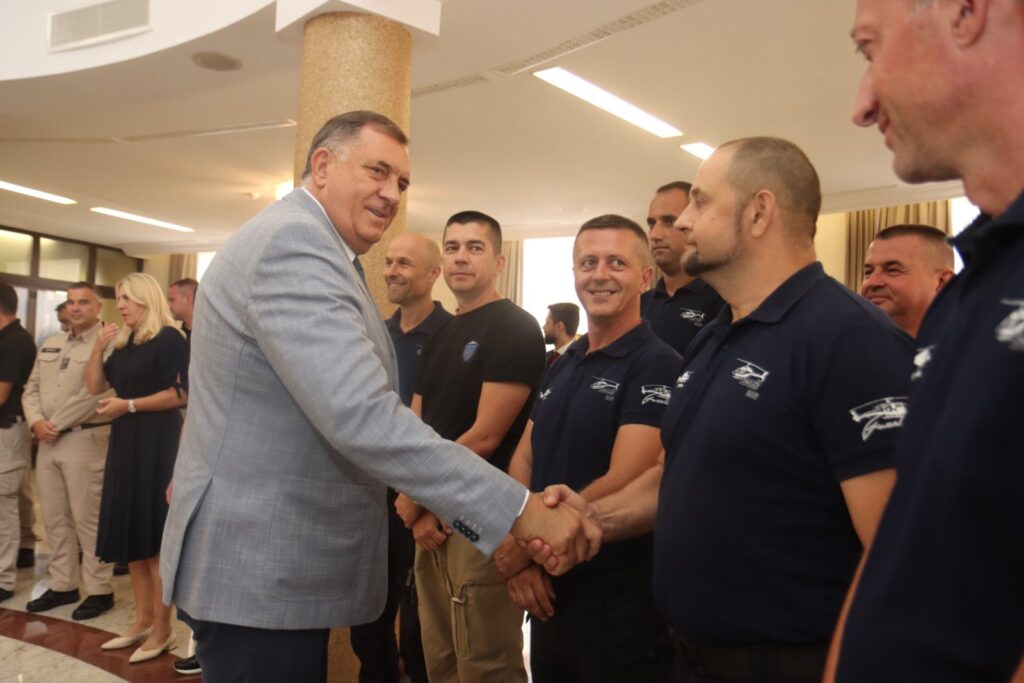 Предсједник Републике Српске Милорад Додик организовао је данас у Палати Републике пријем за припаднике Хеликоптерске јединице Министарства унутрашњих послова Србије и Хеликоптерског сервиса Републике Српске.