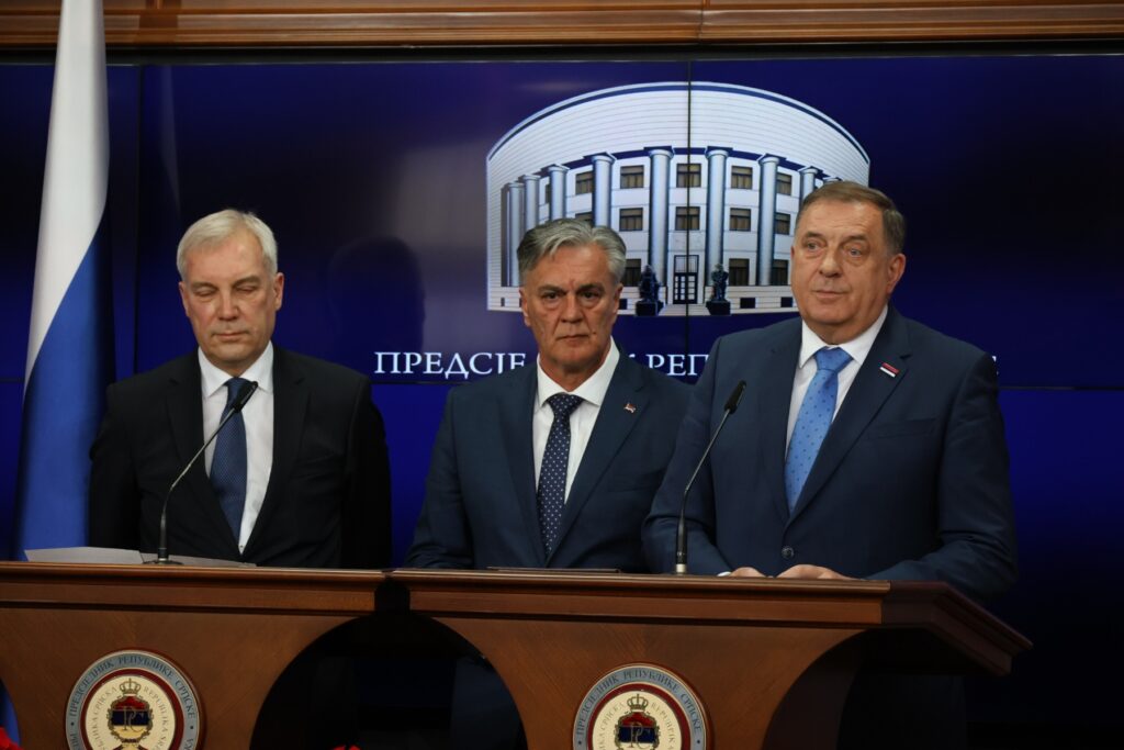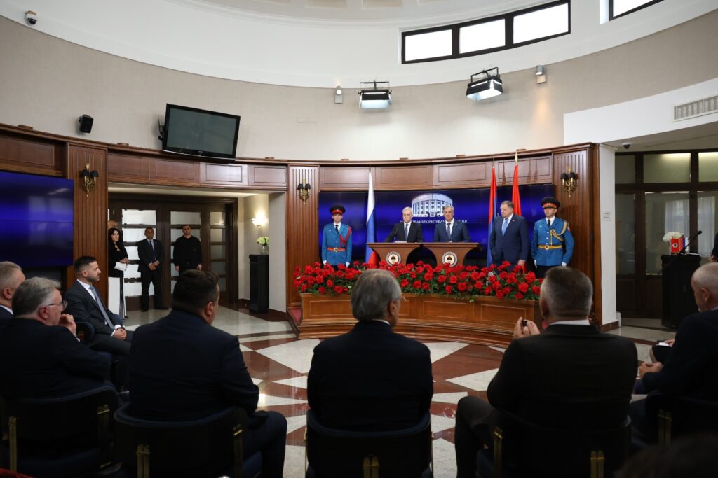 “Дејтонски мировни споразум је акт међународног права, а руши се посредством ПИК-а, гдје постоји неформална моћ неких који сматрају да могу да владају мимо међународног права, и посредством Шмита и појединих домаћих институција који руше Дејтонски споразум”, рекао је предсједник Каран након састанка делегација Републике Српске и Русије.
